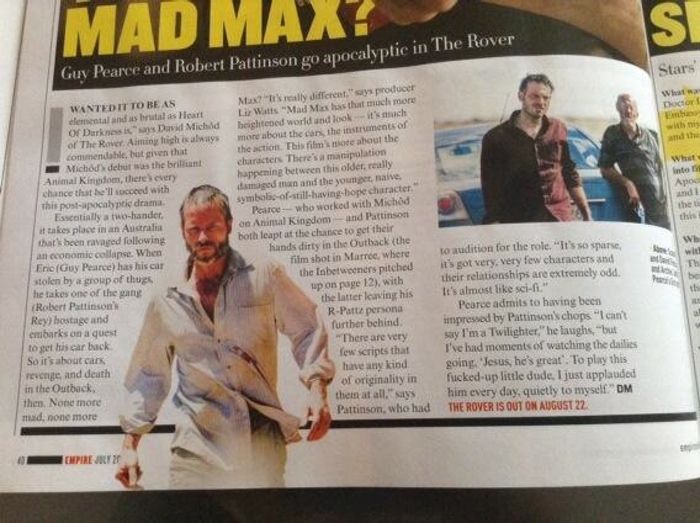 Scan: Rob & 'The Rover' destacados en le edición de Julio de 'Empire' Magazine (UK)